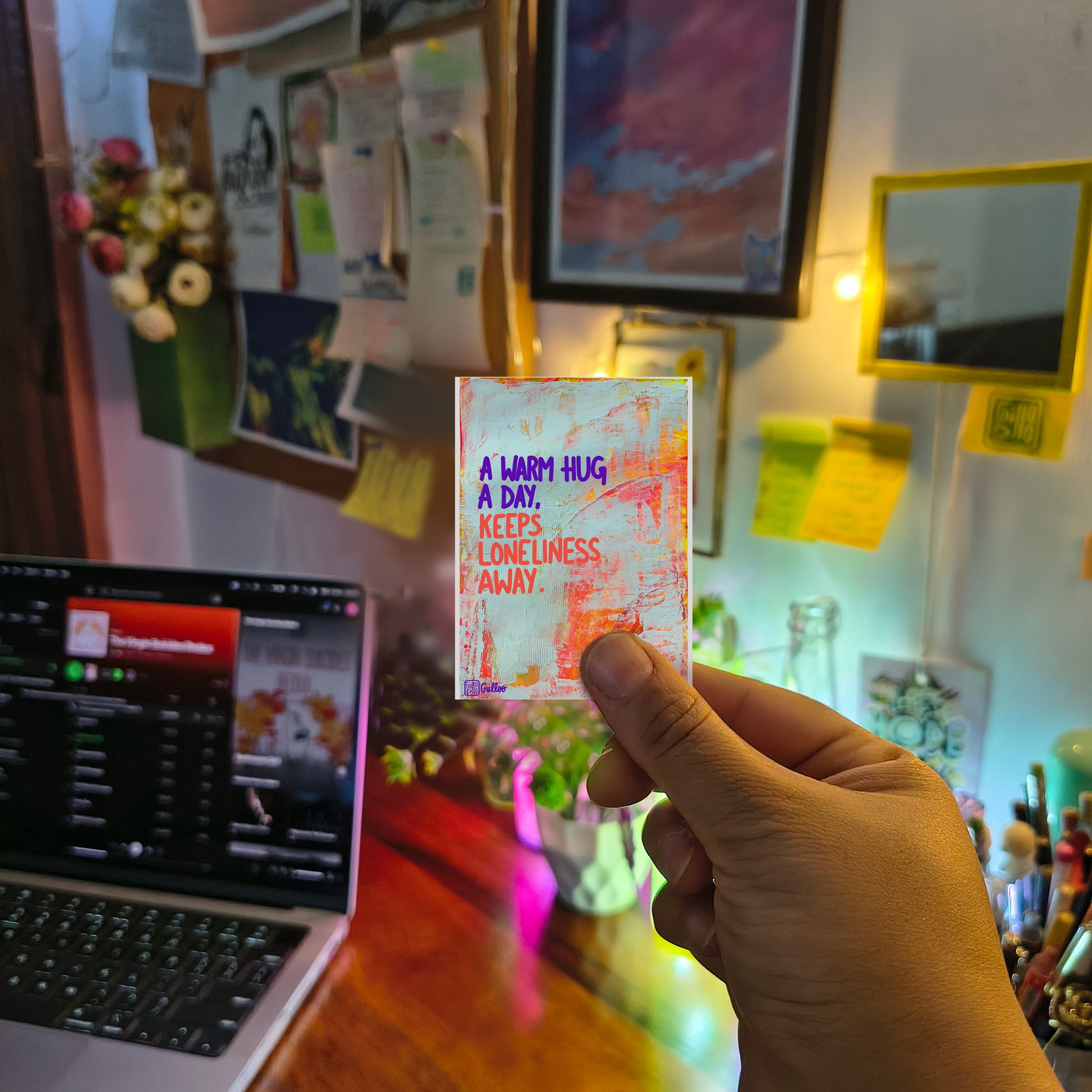 Human warmth matters. This sweet reminder celebrates the healing power of simple affection and togetherness. Stick it somewhere visible to remember to reach out, connect, and share comfort with those around you. We all need each other.